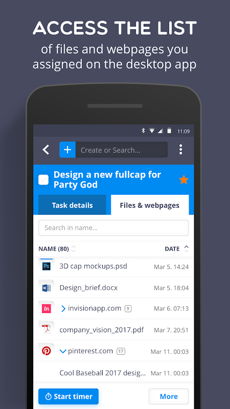 • get a list of all files and websites assigned to your tasks