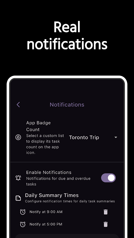 3) アプリ内およびウィジェットからタスクを管理します。変更内容はファイルに書き戻されます