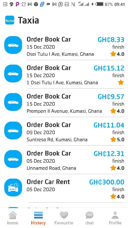Taxia allows it's users to Book Car, Hire a driver, book moto ride or send goods to their relatives/friends within Ghana from one place to another.