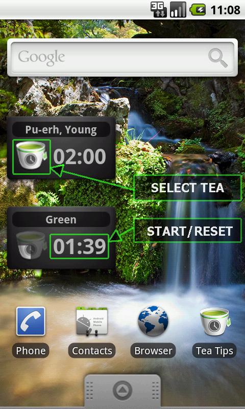 Widget with countdown timer for brewing tea.