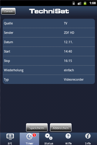 - Timer-Verwaltung eines TechniSat Digitalfernsehers oder Digitalreceivers mit Fernzugriff-Funktion
