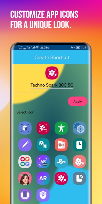 アイコンチェンジャー: Tecno スタイルのアイコンチェンジャーでホーム画面を完全に変身させます。 TECNO Spark 30C 5G テーマのエレガントなデザインに合わせてアプリのアイコンをカスタマイズし、携帯電話のインターフェイスをお気に入りの Trcno と同じくらい洗練されたものにします。