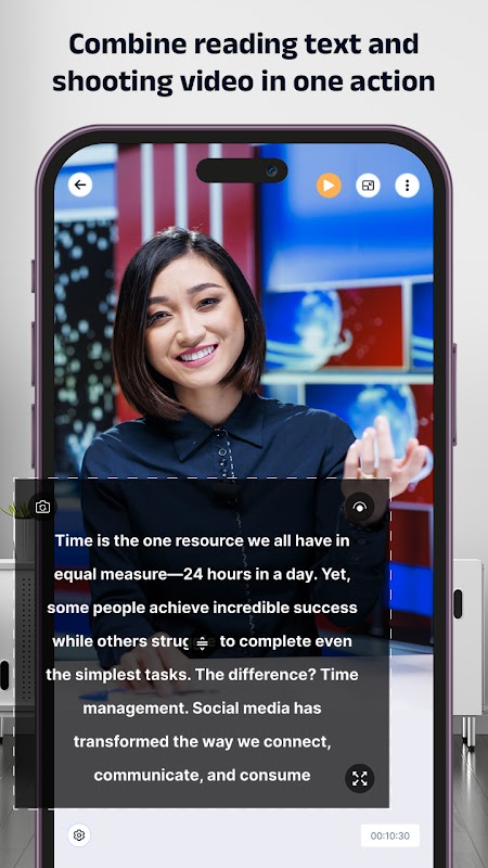 台本をあらゆるアプリの上に表示できます。Instagram、TikTok、YouTubeなどのカメラアプリに最適です。動画ブロガー、インフルエンサー、教育者に最適です。