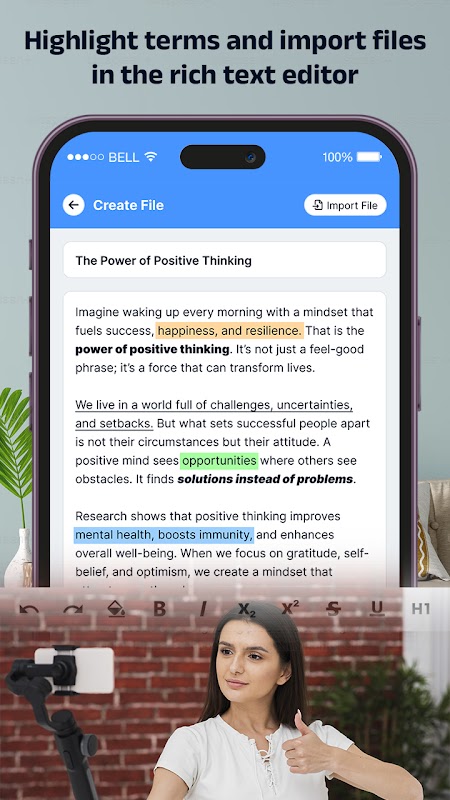 アプリ内で簡単に台本を作成したり、Googleドライブ、ファイルマネージャー、.txtファイルからインポートしたりできます。コンテンツを数秒で整理できます!