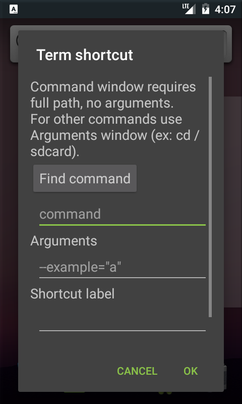 ランチャーのショートカット機能を使用すると、コマンドやシェルスクリプトに「ボタン」(Androidのショートカットウィジェット)を作成できます。