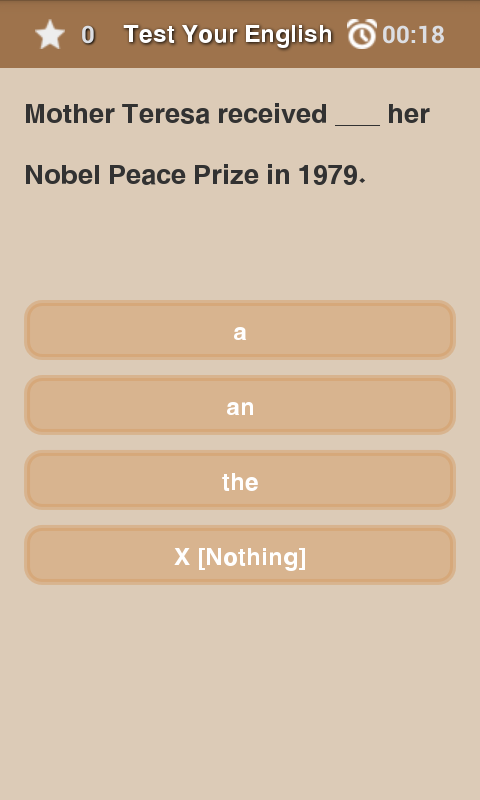 Game to test your level of English, in the form of questions and four choices. Think the right answer and do not exceed the timer.