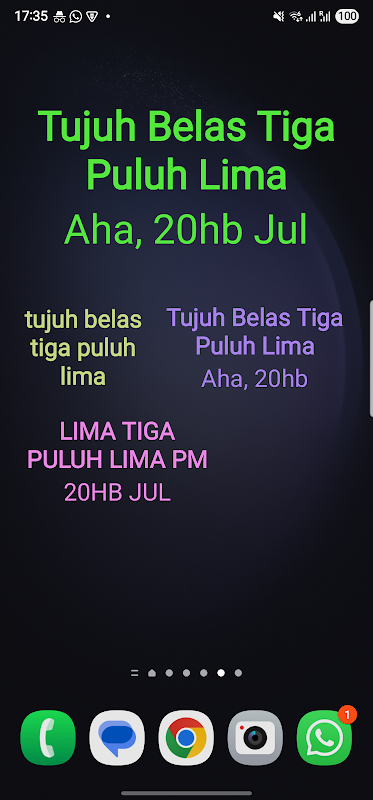 フォント/サイズを設定できる、数字ではなく完全な単語で時間を表示するウィジェット