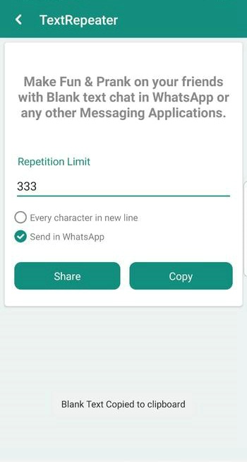 テキスト リピーター - テキストの繰り返し 10K はより良いオプションで、必要なときにいつでもテキストを繰り返します。また、私たちのアプリはテキストや他の種類の絵文字と書式設定をサポートしています。さまざまなユニークなテキストを使用して独自のメッセージを作成し、友達に送信するのが楽しくなります。メッセージを頻繁に送信する 10 代の少年少女にとって、このアプリは間違いなく楽しいものです。当社のテキストリピーターには多くの機能が備わっているため、メッセージを繰り返し入力する必要はもうありません。