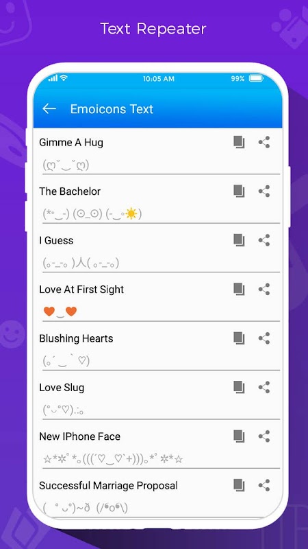 • Share your repeated text in any app.