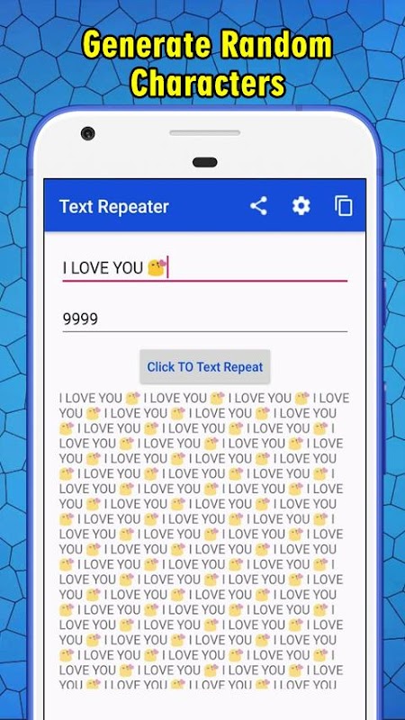 Text Repeater app provides best functionality to repeat text as per your requirement. Text Repeater also support emojis for repeating.