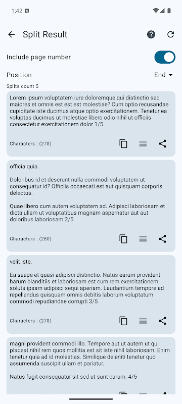 * 自動セグメンテーション: テキストを貼り付けるだけで、アプリがプラットフォーム固有の文字制限に従ってインテリジェントにテキストを分割します。