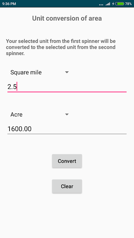 * Unit converter of length, area and mass