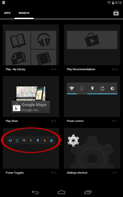 1. Power Togglesウィジットを見つけてホーム画面に追加します
