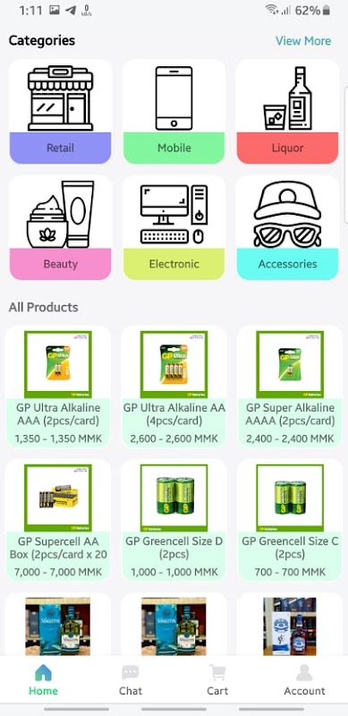 - မိမိရှာဖွေ ဝယ်ယူချင်တဲ့ ကုန်ပစ္စည်းတွေကို ပစ္စည်းအမျိုးအမည် (Category) အလိုက် အလွယ်တကူရှာဖွေ ဝယ်ယူနိုင်မယ်။