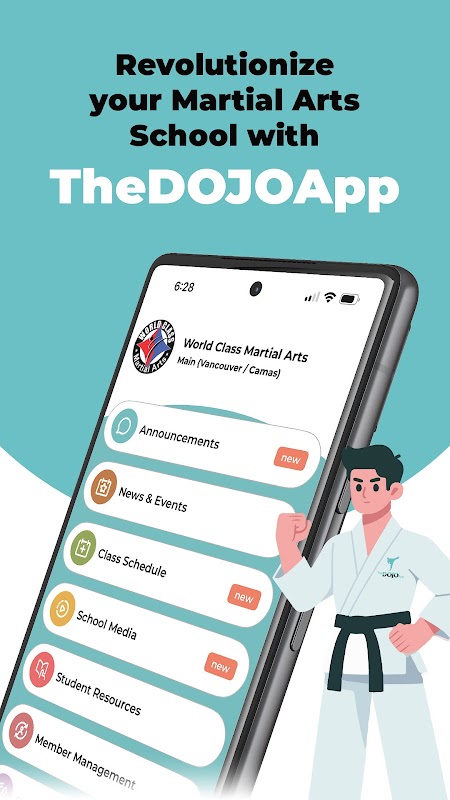 DOJOアプリは独自のブランドの学校のアプリを武道の学校に提供します。