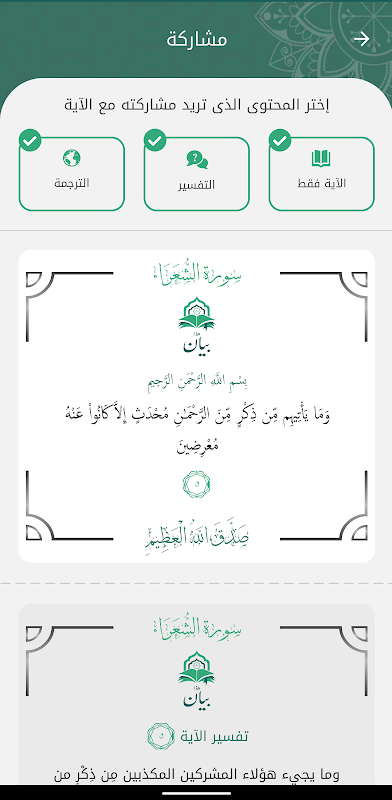 - Share multiple ayat.