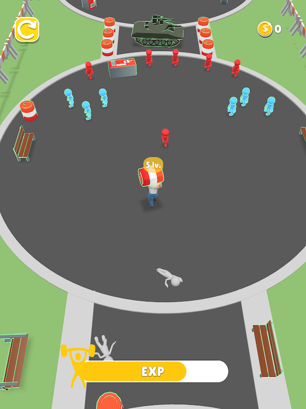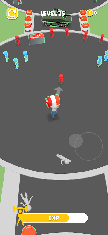 敵に周囲の物を投げて生き残りましょう。ジョイスティックでキャラクターを操作。