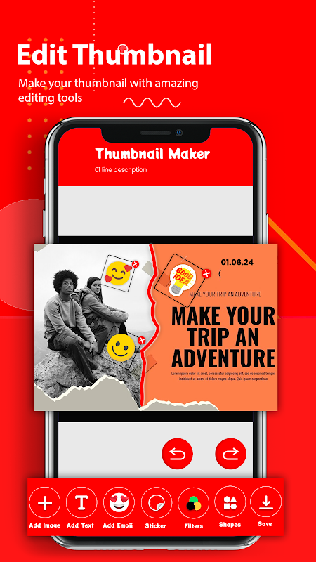 Thumbnail Maker は単なるテンプレートではありません。 強力な写真編集ツールも装備されています。 アプリ内で直接画像を調整および補正できるため、別の写真エディターが必要なくなります。 この合理化されたアプローチにより時間が節約され、一貫した設計プロセスが保証されます。