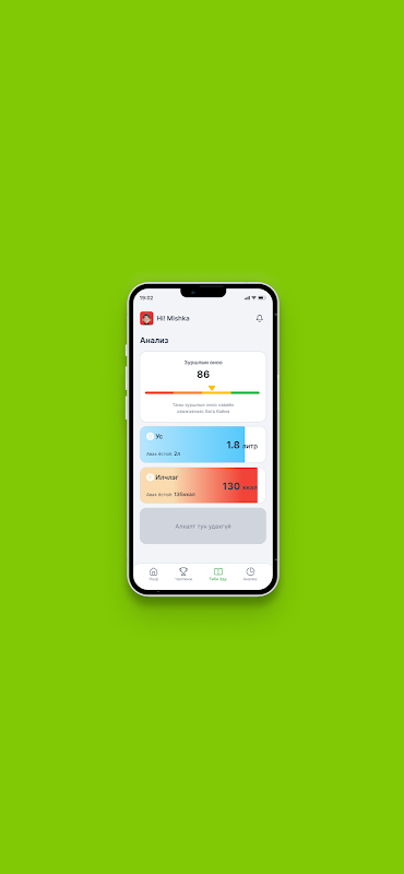 Та ухорийн мэдээллээ буух ёстой ус, авах ёстой илчлэг, байх ёстой жингээ тодорхойлж, хооллолтын зурзлын тест беглуснуудад чалленжуудад хамрагдана. Чалленжид зунжээр зоол идэх даалга зоол идэх даалга Сартай。 Та хоол、усаа хэр сайн бсартгэнэ。 Хоол зͯйч нар таньд тохирсон зưвлеголтийг хƯргэх болно。