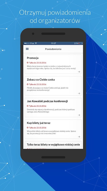 W aplikacji znajdziesz szczegółowy opis wydarzenia obejrzysz zapowiedzi prelegentów i będziesz mógł dodać wydarzenia do swojego kalendarza.