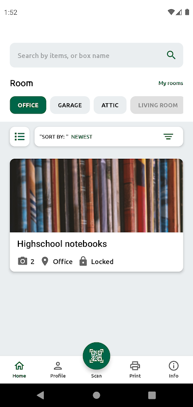 -物理ストレージボックスをスキャンしてライブラリを検索–特定のアイテムを検索する場合、アプリを使用してQRコードをスキャンし、適切なボックスを見つけるだけです。ボックスに関する情報を確認する簡単な方法です。