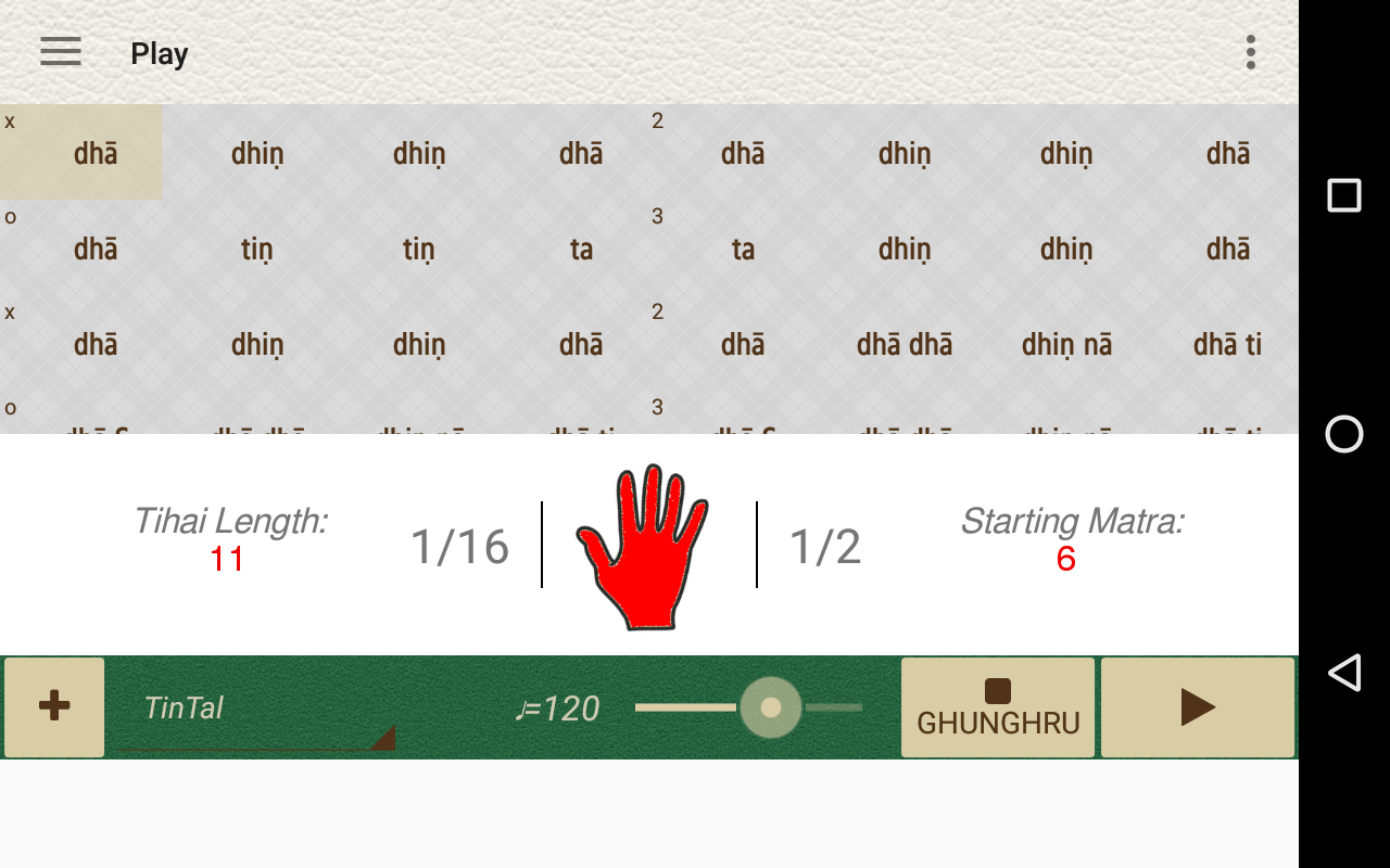 へのアプリ - Tihai Shatra Liteは TihaiShatraするの機能限定された、無料版であります作曲とtihaiを果たし、通常、ヒンドゥスターニー音楽で曲を締結するために使用さポリリズムフレーズ。 Tihai組成物は、タールの和または開始時に3回と土地を繰り返されパーラ(とや一時停止またはギャップなし)で構成されています。アプリはカタック/タブラ/ヒンドゥスターニーボーカル歌の練習のために使用することができます。