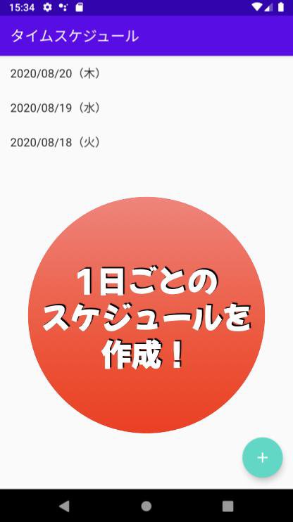 ・アプリ起動後、右下の「+」ボタンからスケジュールを立てる日付を選択します。