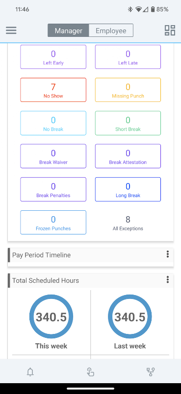 • 従業員のステータスを表示し、従業員のタイムシートを追加または編集します。
