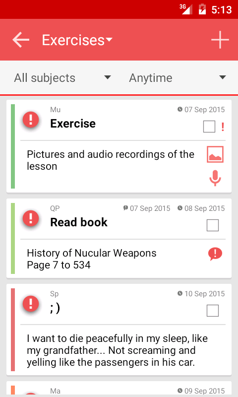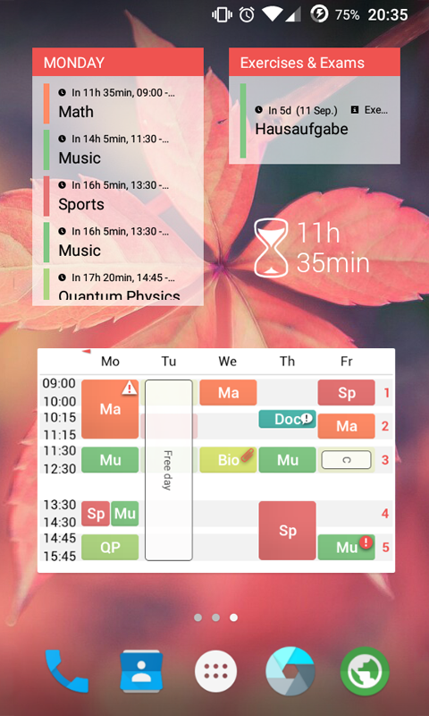 時間割上で予定をタップして、課題, メモ, 試験, 通知を追加できます。