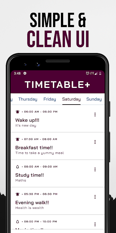 タイムテーブルリマインダーは、毎日のタスクとリマインダーを思い出させます。通知を受け取り、時間どおりに受信する時間またはタイプを設定します。