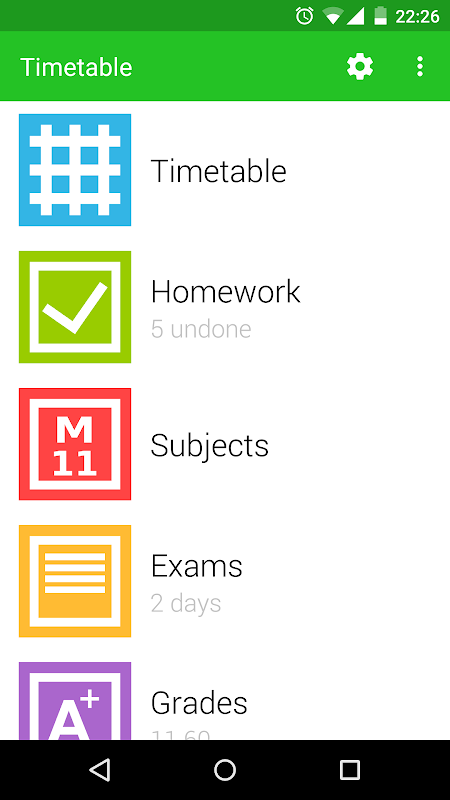 With this app you can easily manage your school life with your phone or your tablet. You can create a timetable, homework, exams, grades and holidays easily.