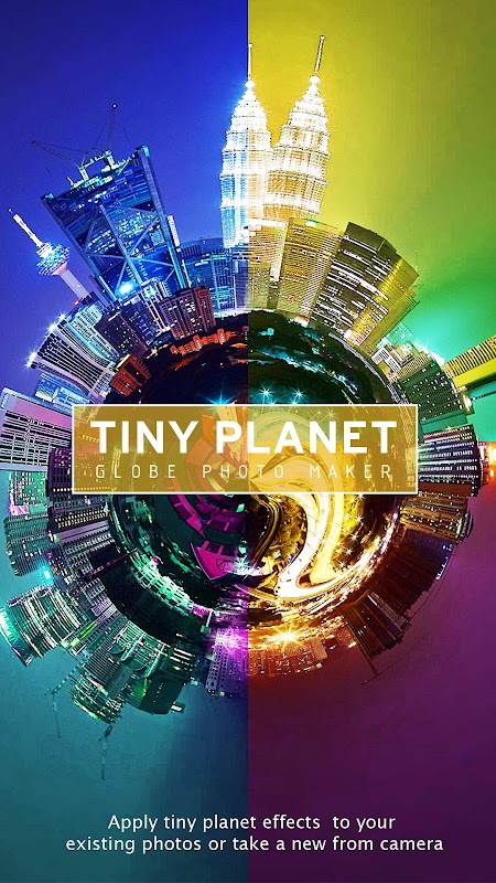 - Apply tiny planet effects to your existing photos or take a new from camera