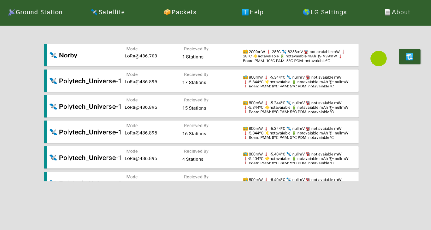これは、TinyGS サーバーで利用可能なすべての衛星と地上局を視覚化する Android アプリケーションです。このアプリケーションには、衛星や地上局周辺の地理的なアニメーションを実行する機能があります。