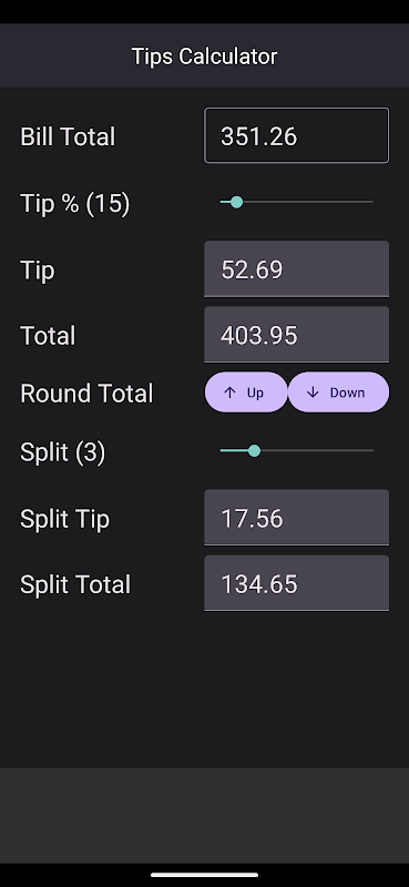 Tip Calc は、一人で食事する場合でも、友達と外食する場合でも、素早く正確なチップを渡すための便利なツールです。洗練された使いやすいインターフェイスで、請求額を入力し、希望のチップの割合を選択して、チップ計算が計算するのを確認するだけです。アプリはチップと合計金額をリアルタイムで計算します。請求書を分割する必要がありますか?人数を入力するだけで、1人あたりの費用が瞬時に割り算されます。最も近いドルに切り上げまたは切り下げることも選択できるため、誰でも簡単にチップを投入できます。 Tip Calc をダウンロードして、毎日の食事を簡単にしましょう!