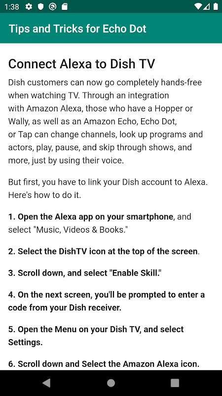 必須のAlexaコマンドを使用したAmazon Echo Dotのヒントとコツ。 Echo Dotは、Alexaを搭載した音声制御スピーカーです。 Alexaは、音楽の再生、食べ物の注文、照明の点灯、サーモスタットの調整、ドアのロック、テレビ番組の検索など、多くのことを実行できます。このアプリでは、Echo Dot、Alexaコマンド、重要なヒントやコツについて知る必要があるすべてを学ぶことができます。