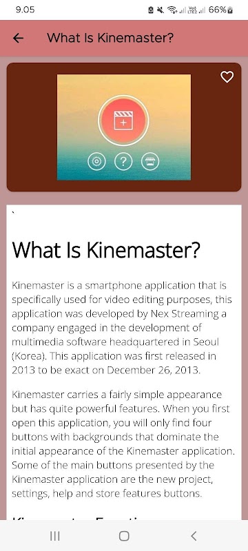 This application is a guide for video editors. This is an entire kinemaster guide and step by step tutorial to find out editor vidéo using Kine Master apps and its simply give easy tips and tricks for kine master fans.This is an unofficial guide app for Kine Master video editor tips,this application is free and support for all android devices.