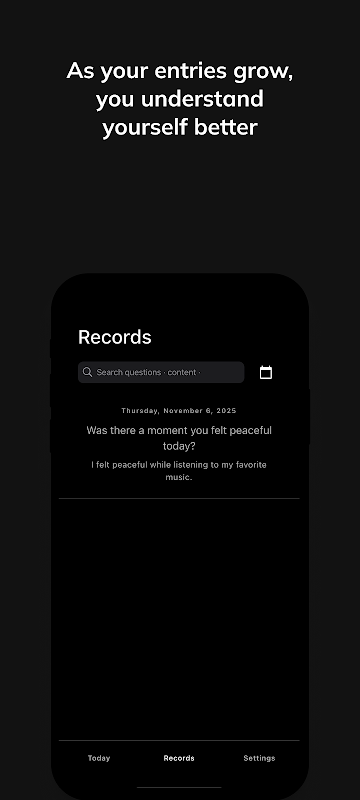 その日の回答は時間が経っても残り、いつでも振り返れます。過去の自分の考えを確かめ、成長の軌跡を感じてください。