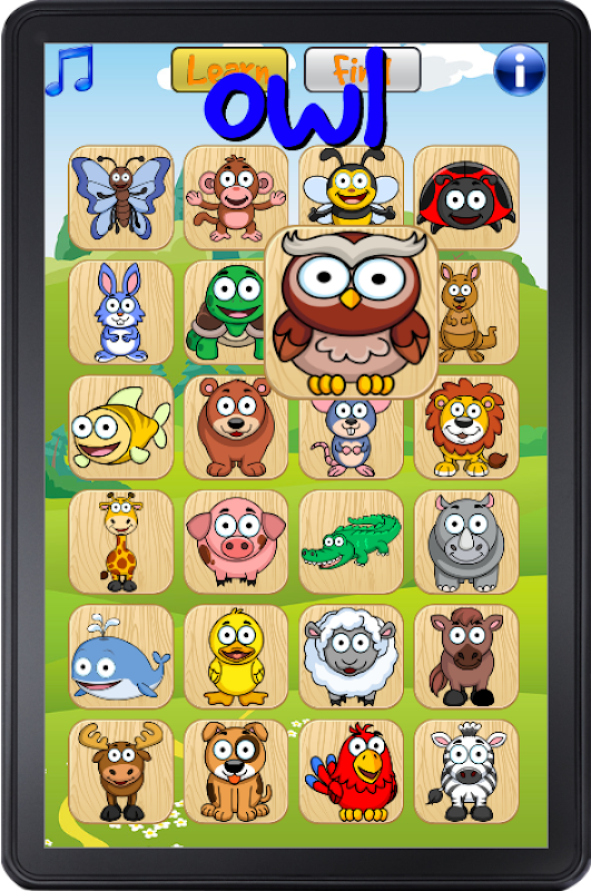 学ぶ:このゲームモードでは、お子様は動物のタイルをタップすると、その名前と鳴き声を聞くことができます。探す:このゲームモードでは、お子様は名前で動物を探すように指示され、成功すると肯定的なフィードバックが与えられます。
