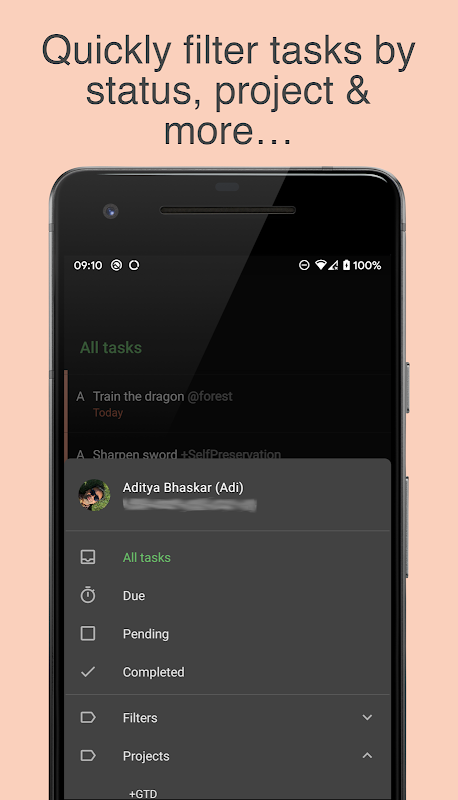 あなたが所有し、管理するtodo.txtファイルに裏打ちされたシンプルなタスクマネージャー。 Googleドライブ、Dropbox、またはローカルファイルと同期します。
