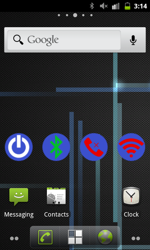 Put the widget on your home screen and tap it to toggle your Bluetooth setting. The widget indicates the current Bluetooth setting by the colour of the Bluetooth icon as follows:
