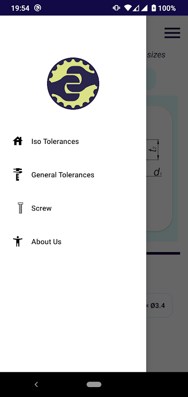 穴とシャフトの等公差(mm)、および一般公差。