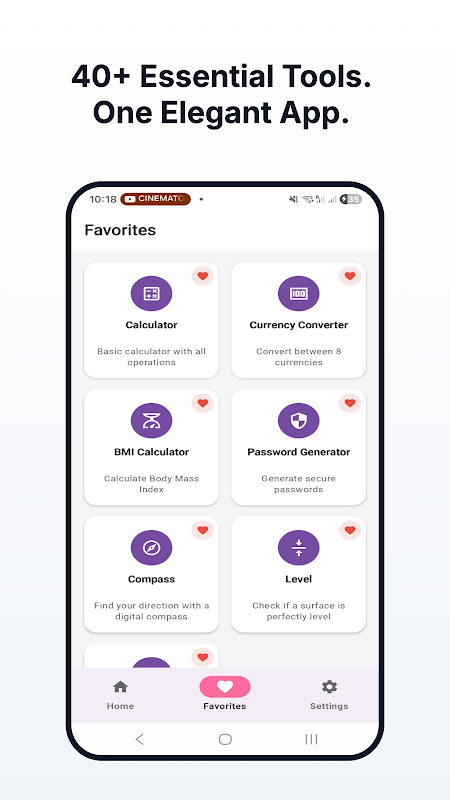 スマホが単機能アプリだらけで散らかっていませんか?ToolBox Proは、40種類以上の必須ツールを美しくデザインされた1つのアプリにまとめています。学生、プロフェッショナル、開発者、あるいは整理整頓が好きな方など、どんな方にもぴったりです。