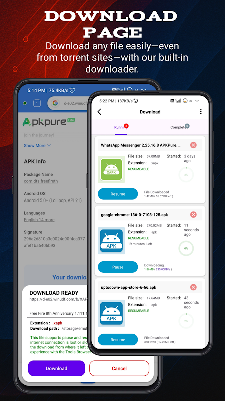 📥 高度なダウンロード マネージャー – 再開サポート付きの高速かつ効率的なダウンロード。