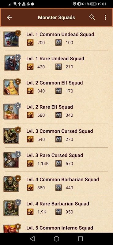 1.攻撃に使用するモンスターと軍隊に関する情報。