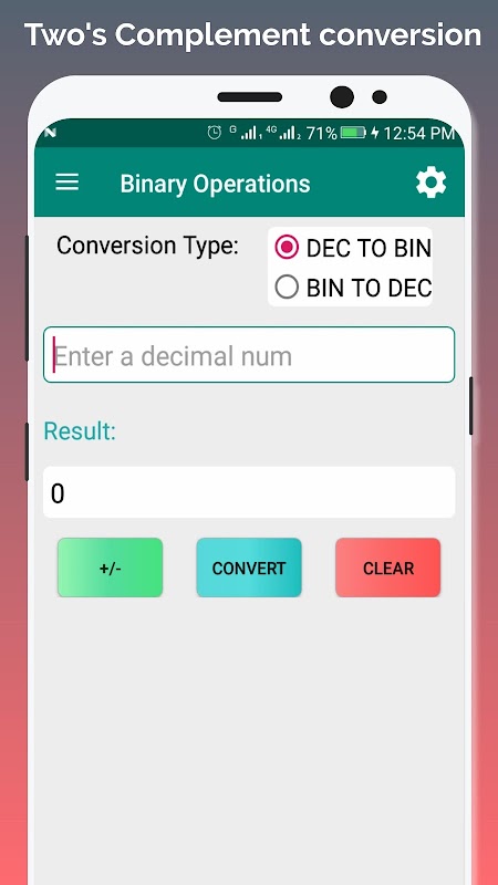 Furthermore, this app has functionality for two's complement as well as normalized mantissa exponent binary representation. This feature is mostly useful for Cambridge A-levels students to check their result after calculation. You can now easily convert from binary to denary or vice-versa, using this tool. Further notes are available under developer notes in the app.