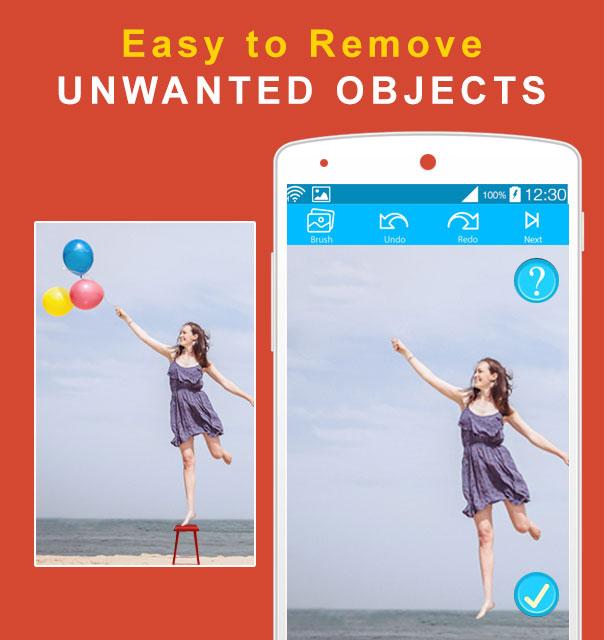 オブジェクトを削除してあなたのselfiesからにきびや傷を取り除く。オブジェクトの削除アプリケーションの正確な選択のために追加されたオブジェクトルーム削除機能。タッチ消しゴムツールは、クイックマスキングに役立ちます、タッチ消しゴム