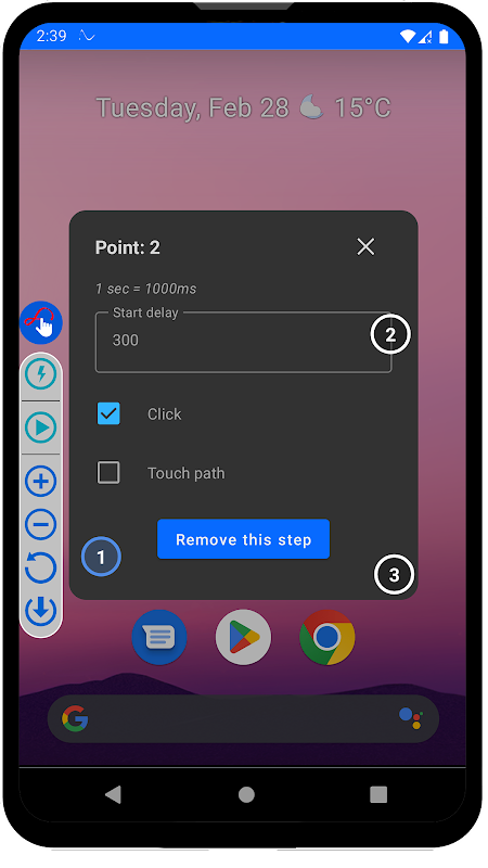 他のアプリの上で自動クリックとタッチ ジェスチャを実行します