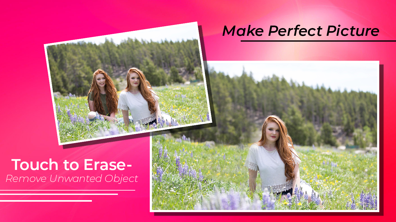 Touch To Erase - Remove Unwanted Objects with simple and easily remove unwanted portion of your image. this app have best tools to make your image awesome Learn how to auto-Remove Objects from your images in no time!Remove Objects is a clever app that lets you remove unwanted content from your photos using just the tip of your finger. You simply brush over the objects you want to remove so that they’re selected in red, then tap “Start” and watch while they magically disappear!