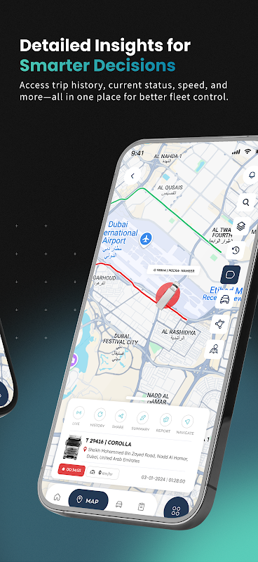 車両の位置を常に正確に把握。位置情報、速度、ルート履歴を高精度に追跡できます。