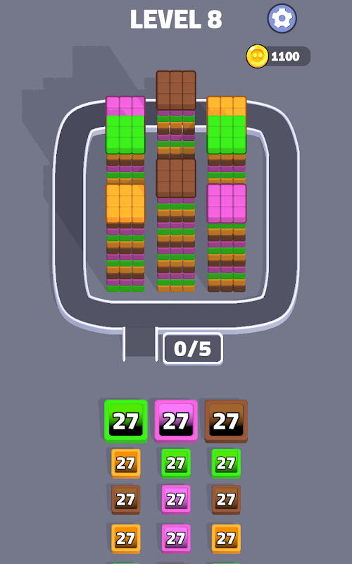 キューブは、上にブロックが置かれていない、空いている状態のものだけを集めることができます。そのため、一手ごとにタワーの形が変わり、新たな可能性が開かれます。それぞれの穴には容量があり、同じ色のキューブでいっぱいになると、穴は完成し、ベルトコンベアから消えて次の戦略的な動きのためのスペースが確保されます。